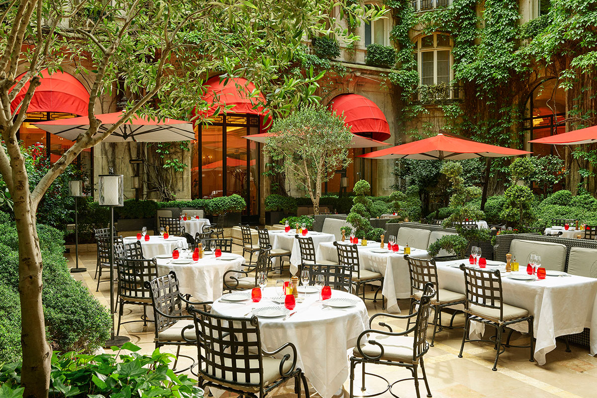O La Galerie oferece refeições durante o dia todo, com um vasto cardápio de café da manhã e o famoso chá da tarde. Enquanto o La Cour Jardin está instalado em um agradável pátio cercado por vegetação, servindo pratos sazonais de maio a setembro (durante o verão) ao ar livre. Já no La Terrasse Montaigne, o restaurante ao ar livre instalado no terraço do hotel, ao longo de sua fachada, na famosa avenida da alta costura parisiense, você poderá desfrutar de uma leve e refinada culinária francesa.