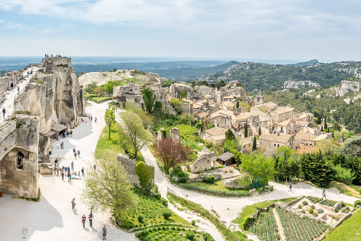 Uma cidade no topo de um morro em rochas. Metade da cidade está em ruínas, mas a outra parte encanta por seu estilo medieval. Com ares tranquilos, aqui você encontrará sossego enquanto faz suas compras pelas lojinhas com produtos típicos e artesanais. No topo do morro é possível visitar as ruínas de um antigo castelo. Você também pode visitar o Carriéres de Lumiéres, com imagens de artistas consagrados que são projetadas nas paredes de uma antiga pedreira. É impossível não se impressionar com esse vilarejo de 400 habitantes.