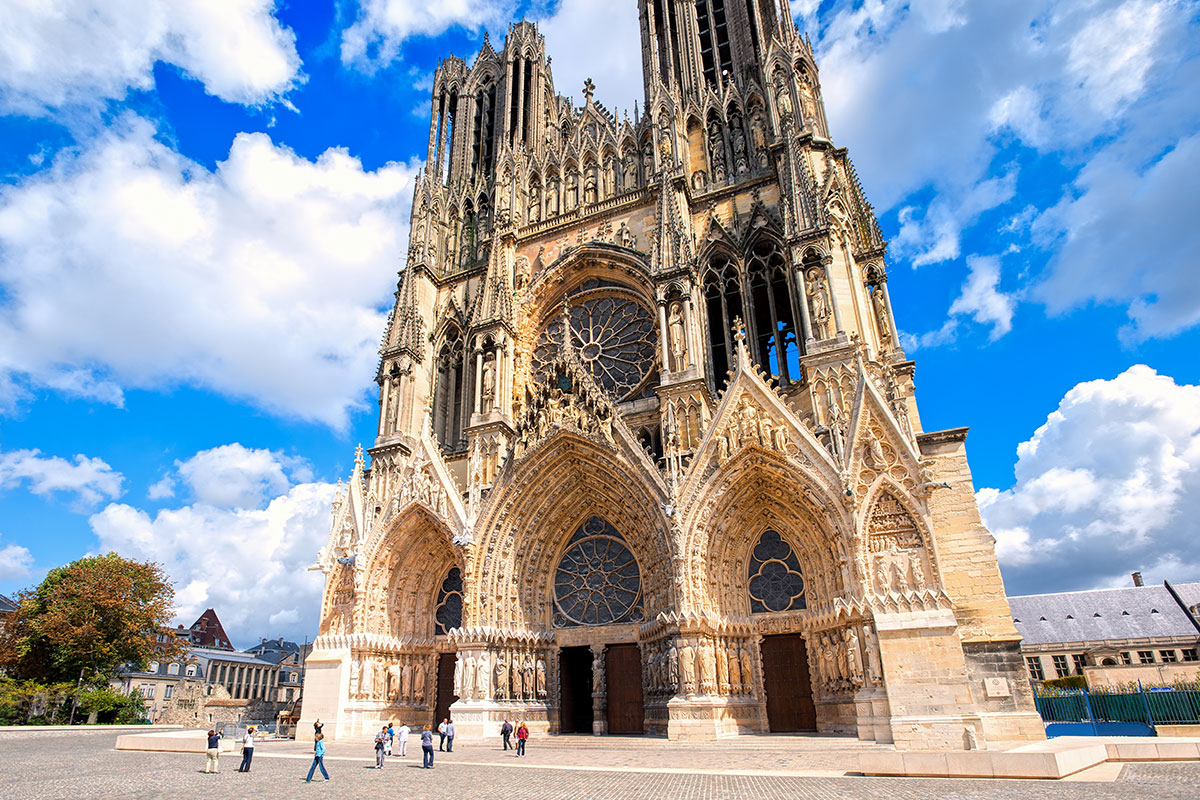 A Catedral de Notre de Dame de Reims é outro atrativo de Champagne que merece sua atenção. A igreja, que se tornou Patrimônio Mundial da Unesco em 1991, é belíssima e uma das mais importantes da França. A Catedral foi construída no século XIII e apresenta arquitetura gótica, imensos arcos que compõem sua nave (corresponde ao espaço central e aos dois espaços laterais da igreja), mais de 2.300 estátuas e um importante conjunto de vitrais belíssimos – alguns desenhados por Marc Chagall.